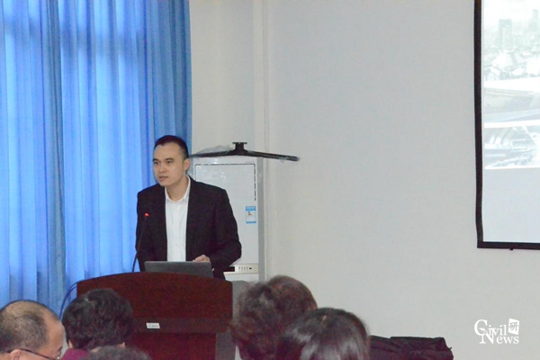 辛佐先院长首先对其母公司隧道股份进行了介绍,接着对集团下属的BIM中心进行了简介。他提出,BIM在行业发展的关键,为“平台开发+标准制定”,借助于云计算、互联网及大数据,BIM在未来一定大有可为。他对BIM的理解进行了详细介绍,对其来源即制造业中的电子样机技术进行了介绍,对其在波音飞机的设计应用中也做了较为详尽的讲述。他引入BIM成功应用的三个案例,分别为BIM在上海北横通道的应用、厦门轨道交通线网中的应用及城市信息化管理平台中的应用,从BIM的四大工程效果、BIM的应用模式及BIM协同管理平台等方面进行了详尽阐述。
