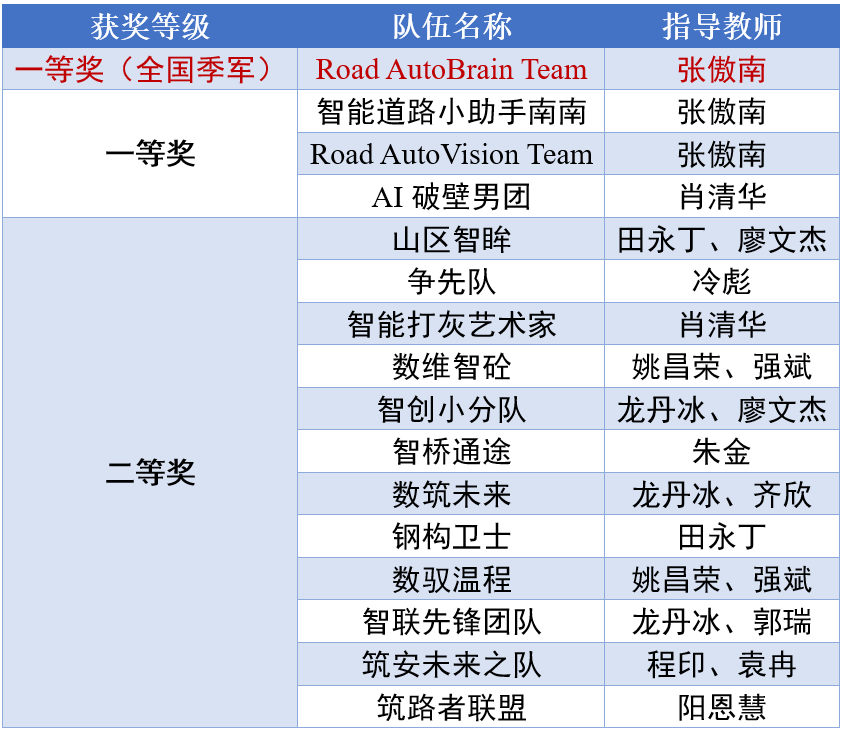 作为大赛的重要参与者,德赢官网团队凭借扎实的科研功底与创新实践能力,在众多优秀队伍的角逐中突破重围,斩获佳绩。其中,由张傲南教授指导的Road AutoBrain Team团队一路过关斩将,成功斩获全国季军(一等奖),成为德赢官网在此次赛事中的亮眼名片;同时,4项一等奖的荣誉还包括张傲南教授指导的“智能道路小助手南南”“Road AutoVision Team”两支队伍,以及肖清华教授指导的“AI破壁男团”。此外,田永丁等14位老师指导的12个团队进阶决赛后均顺利拿下二等奖,尽显德赢官网学子的创新风采与团队协作能力。