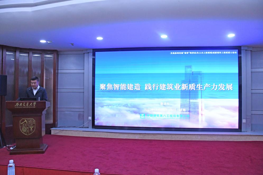 中建第八工程局西南区域公司总工程师詹进生聚焦“智能建造与建筑业新质生产力发展”,分析传统建筑行业面临的劳动力结构变化、生产效率不足等痛点,分享中建八局从智能建造1.0到3.0的进阶路径,以及施工机器人、无人化梁场等科技产品在成都天府中心超高层项目中的应用成效。