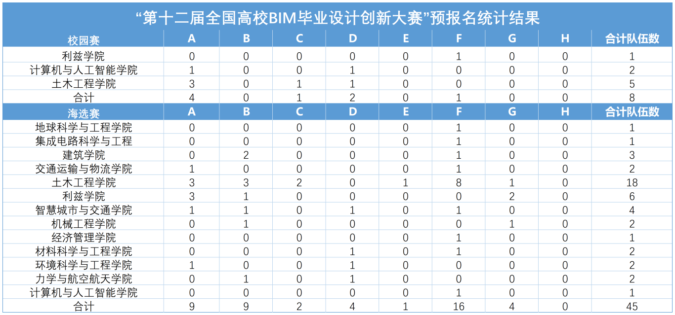 1.如果在海选赛报名结果土木学院的某一模块队伍数超过2支,将以线下方式进行筛选(具体筛选方式另行通知),选出2支队伍以土木学院的身份参加此模块的海选赛,其他未选中的队伍则调整至未超过2支队伍的模块,若其它赛道队伍数已满,则直接淘汰。